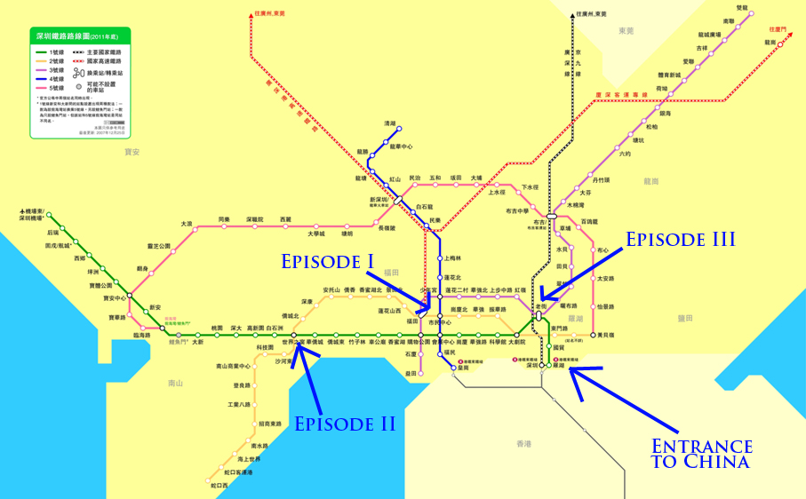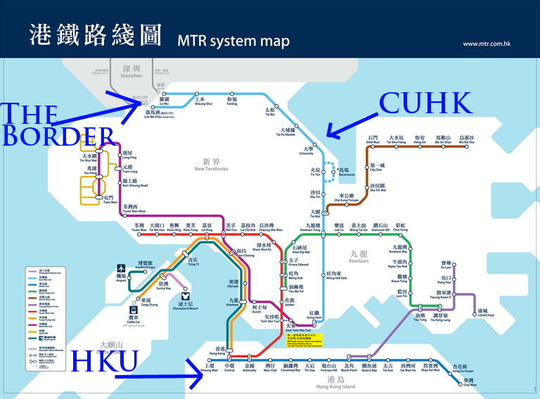 We departed on Tuesday evening and planned to meet Mike’s friend Edmund [from CUHK] and spend the night in Shenzhen at a hostel that his friends had already booked. From HKU, the journey to the border takes almost an hour and a half, CUHK is pretty close to it: