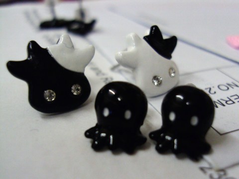 Ever since becoming a fan of SHINee, I’ve started liking stud earrings more than dangling ones [they wear them a lot]. Ever since coming to Hong Kong, I’ve started wearing stud earrings more than other kinds because the variety here is fantastic. And ever since I decided I wanted a third earlobe piercing, I’ve been buying stud earrings almost obsessively.