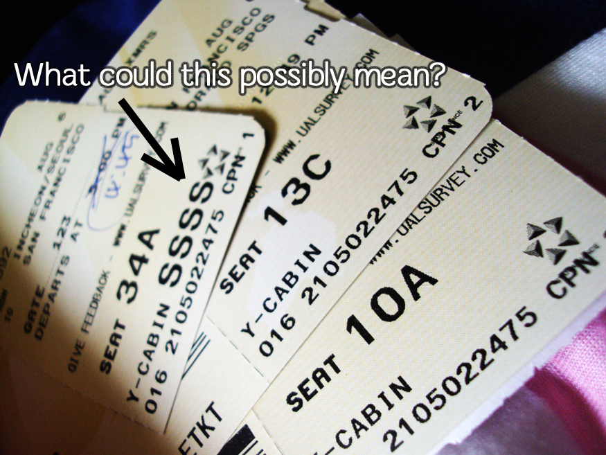 To make a longer story short, SSSS basically means RANDOM FULL BODY SECURITY CHECK, with shoes off and bags open and everything. I had to ask to find out — I thought I was somehow superficially labeled as a potential terrorist.
