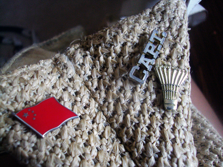 On bag G, I also discovered these little pins, two of which were from being the co-captain of the badminton team my senior year. Although they’re in this post, I decided to keep the pins while throwing away the purse.