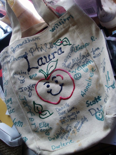 I think my third grade teacher made this for me when I moved from Downer’s Grove to Naperville. I used it to carry my library books until the books I read were too fat to fit into the tote…