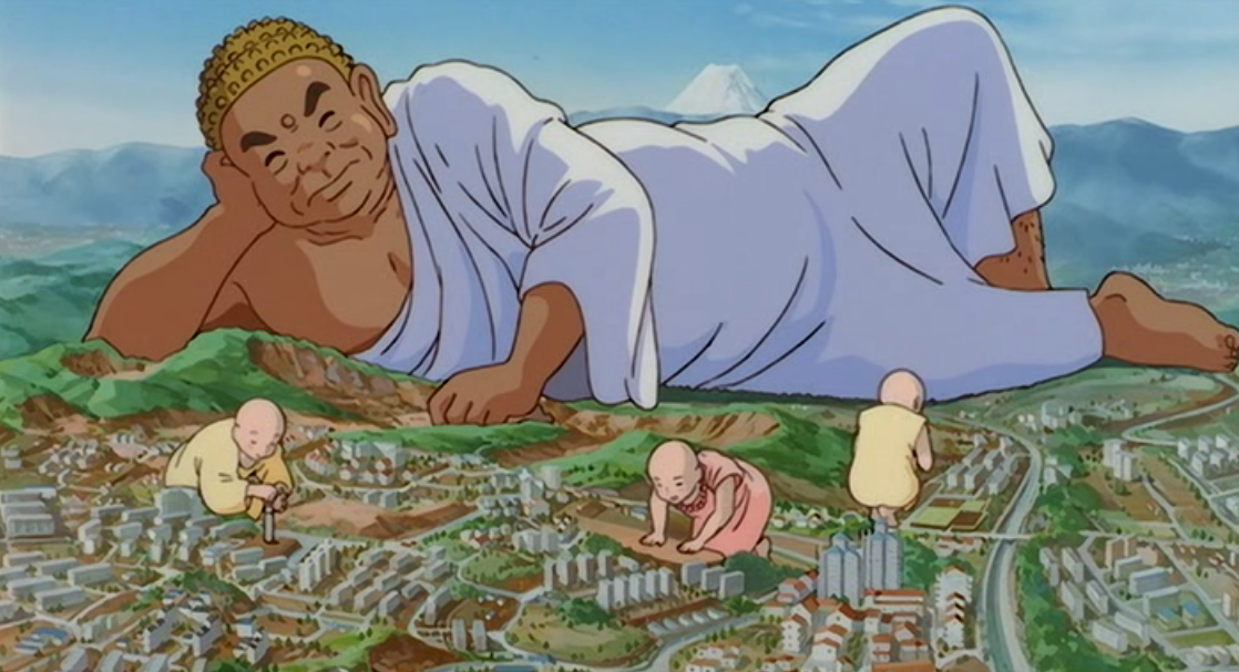 After a long day, I wanted to watch something that wouldn’t require too much brainpower, so I chose Pom Poko (1994). I had read about it before on Cracked— yes, it’s the movie with raccoon testicles. I’ve seen a lot of weird cartoons, but this one probably tops them all for having such ridiculous characters yet harping on a “save the environment” motif. It’s been the only film so far during which I paused to note its weirdness instead of sitting through the entire thing. Of course, such weirdness lends itself well to humor, and this movie was hilarious. I was tempted to screencap all of the jokes but obviously that would ruin it for anyone who hasn’t seen it yet. Pom Poko’s straightforward style makes it almost seem like a parody of Japanese folklore and modern society. In fact, by the end, it pretty much becomes blatant social commentary.