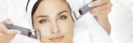Next came the facial, which apparently used fancy Guinot products from France. Having been at church just before my appointment, I was wearing makeup, which all had to come off. I’ve never gotten a facial before, and I really had no idea what to expect, especially considering the treatment was supposed to last 45 minutes. I anticipated being slathered with creams and rubbed down, maybe exfoliated or something. As I lay face-up on the massage table, my masseuse rolled in two little carts, one stocked with products and another that she plugged in. Hmm.