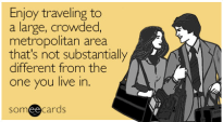 Air travel always offers interesting experiences before one even arrives at the destination. This time, while I waiting in line to board and while walking down the tunnel thing to the plane, I was in front of an older Asian man who was carrying some English-language newspapers. I got the feeling that he was following me a bit too closely, so I was a bit alarmed when I stopped at my row on the plane to pull my laptop out of my bag and he paused right beside me to stuff his bag into the overhead compartment, his armpit hovering just above my face.