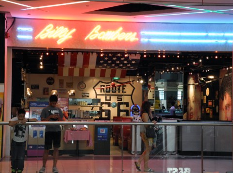 I also noticed a lot of American restaurants and shops, like TGIF, Long John Silver’s, and even Payless, familiar sights that I haven’t seen to such a degree in other Asian countries. When we passed an American-style diner called Billy Bomber, CK asked me if it was also from America, but I had never seen it before, and a Google search indicates that it seems to be specific to Singapore. After a lifetime of enduring (bad) Americanized Chinese food, I was interested to see its counterpart, an ostentatious imitation of American food culture.