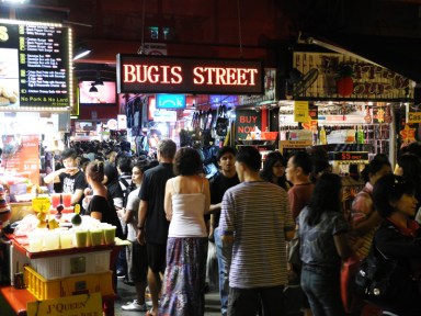 After dinner, we made our way to the actual Bugis Street, which is a street that’s also half 3-story indoor mall. It was clearly a popular place for young people to hang out and shop. A few large plasma TV screens were displayed throughout the building, and they looped a recording of K-pop groups Secret and BAP from when they visited Singapore (presumably). Everything was pretty cheap (and cheap quality), and I ended up buying a skinny belt for S$10, which the salesperson kindly punched a few extra holes in so I could wear it around my waist or my hips.