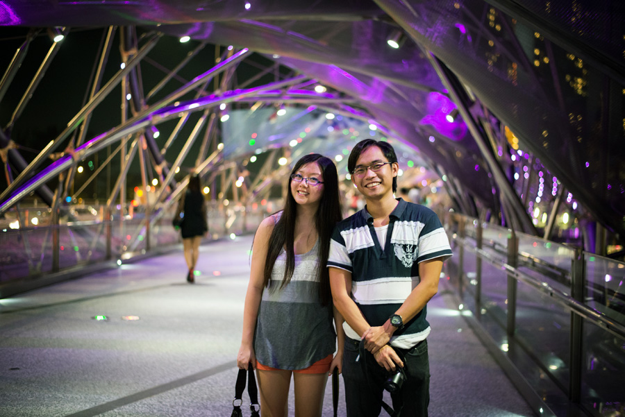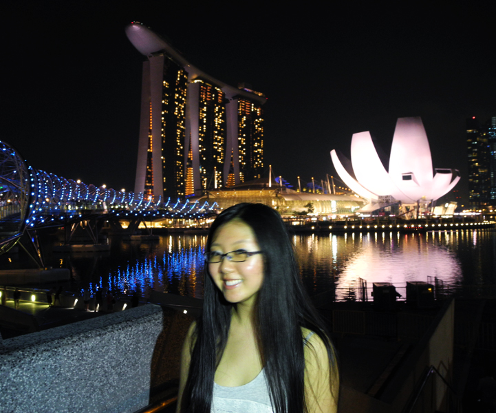 To the left of the hotel is the lovely Helix Bridge, which actually has little LED lights embedded in the sidewalk that have something to do with DNA (sorry, the last and only bio class I took was freshman year of high school), and the lights that wrap around the bridge change colors!