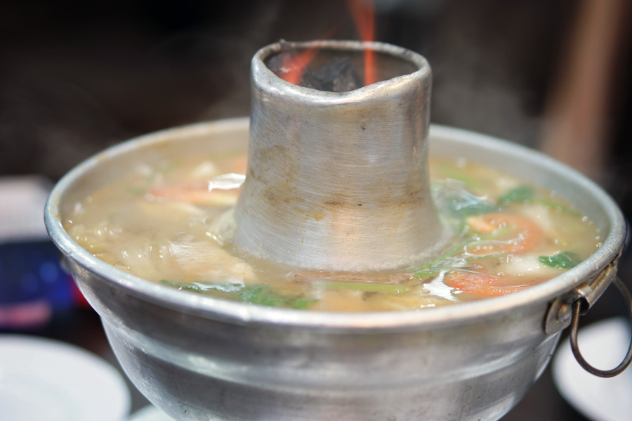 For dinner, we met CK’s friends near Bugis (kind of pronounced like boo-geese) for some fish-head curry, which was delightfully spicy. There was also some fish soup, which was served in a pot with a small fire burning continuously underneath, and the waitress would occasionally swing by to replenish the broth in the soup.