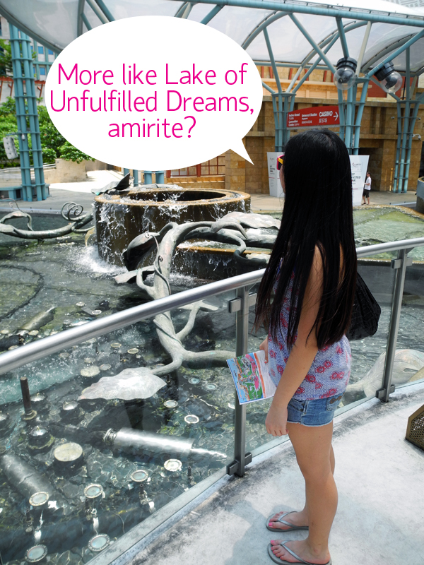 Sentosa is like any other tourist resort: big enough to hold a lot of people and attractions, but it can get old pretty quickly, especially for the locals. The place wasn’t very crowded (perhaps because it was Easter Sunday?). Everything on the island is extravagantly designed, including a large fountain that happened to be turned off during the day.