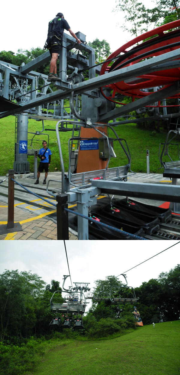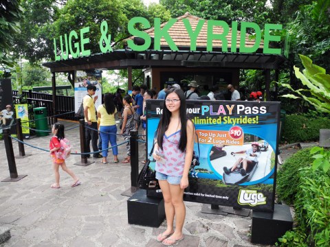 The tickets we bought allowed us to choose a few of Sentosa’s attractions, so after walking around for a bit, Benny and I braved the Luge, which was kind of like go-carting, except it’s all downhill so there’s no motor necessary. I was a little apprehensive due to my fear of going downhill at great speeds (ie. roller coasters), but even elementary school kids were riding enthusiastically, so I strapped on my helmet and took a video (apologies for my ever-present toes). It was quite a dangerous operation, holding my precious camera between my knees while steering.