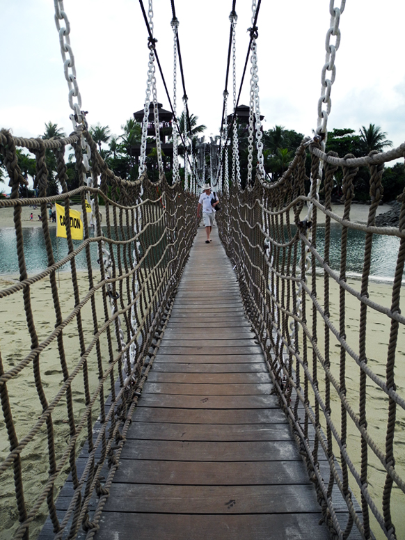 After that, we made our way over to Sentosa. There are so many ways to get there: train, car, bus, cable car, etc. It’s astounding because the island isn’t really that far from the main Singapore island, but I guess Sentosa is a huge tourist attraction, so the more easily accessed, the better. We decided to stroll across the bridge because it was such a nice day, but even that cost us a dollar.