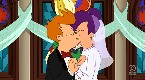 Last time, Fry and Leela as a couple was still a fantasy played out on stage, courtesy of the Holophoner: