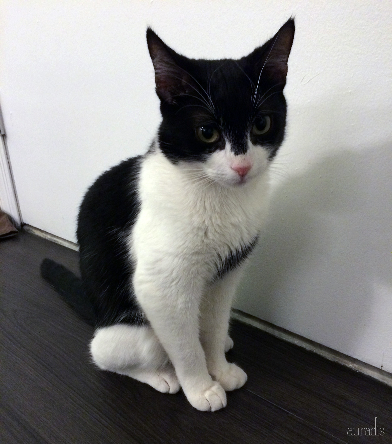 Marty, the black and white kitty, was the most active during my visit — he prowled around, chased toys and generally didn’t sit in one spot for long.