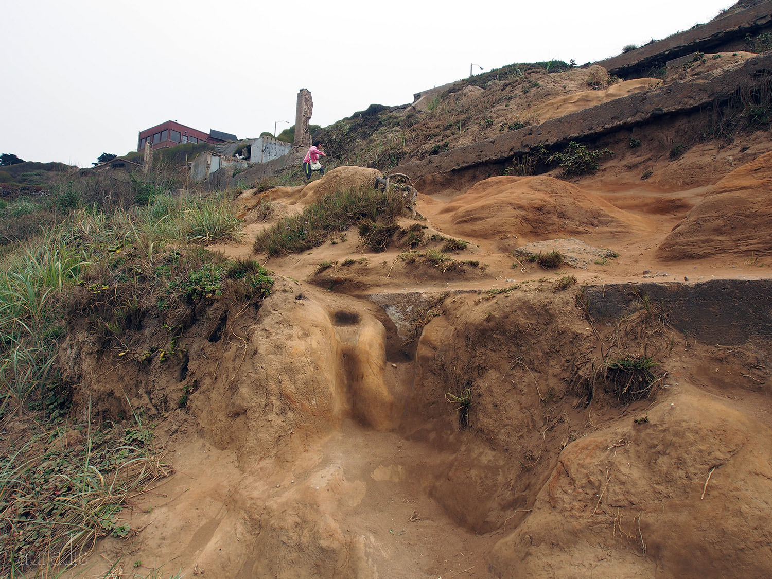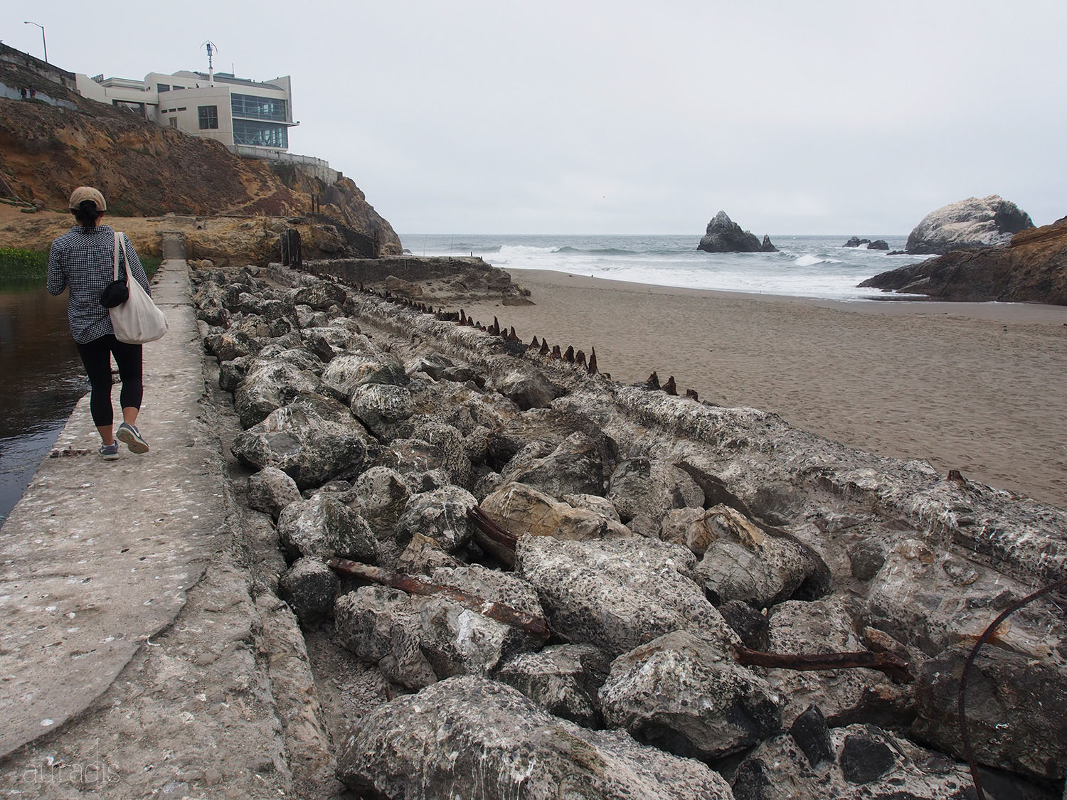 On the western side of Lands End are the ruins of the Sutro Baths, an expansive and glamorous bathhouse from a century ago. Visitors are allowed to climb all over them, which is pretty fun.