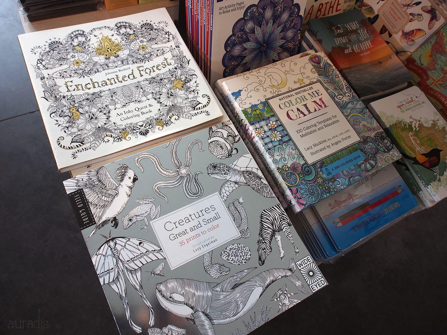 We hung out for a little bit at the Golden Gate Bridge Pavilion, but there isn’t much to look at except other tourists, so we took a car to Lands End for some much prettier views of the coast. I was intrigued to find a collection of coloring books (for adults, presumably) available in the gift shop. I guess it really is a thing now.
