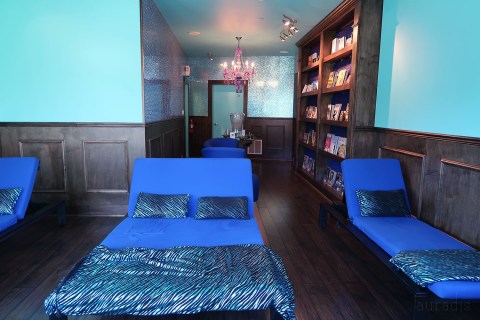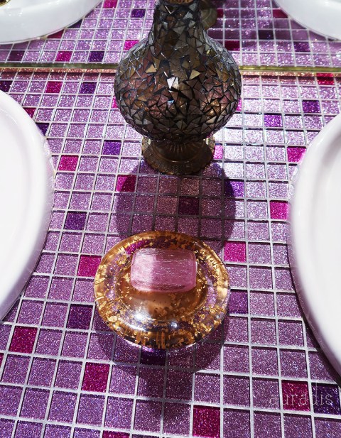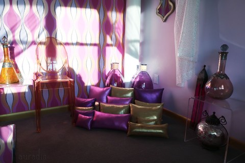 Our room wasn’t ready when we arrived, so we wandered around the patio and made our way over to the spa lounge. Every inch was a celebration of sparkle or color or both.