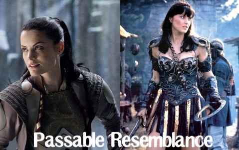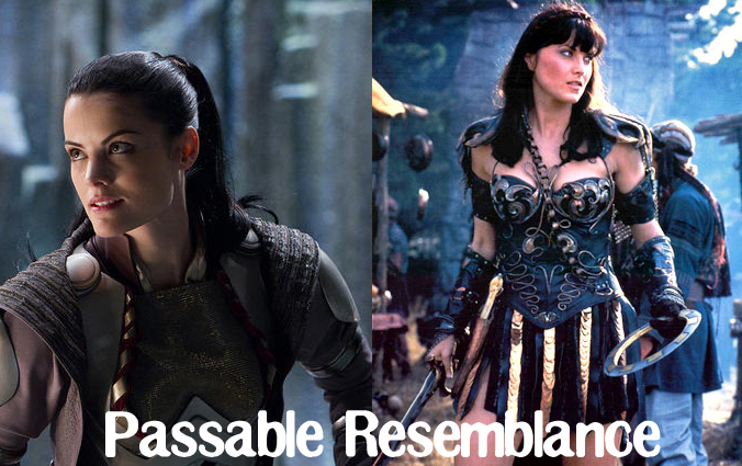 At one point during the second half of the movie, one of the secret agents sees the group of four warriors strolling down the quaint New Mexico street and mutters into his walkie-talkie, “We’ve got Xena, Jackie Chan,” and some other description I’ve since forgotten. It was funny — the theater laughed, because it was mostly true. I get the Xena reference; Jaimie Alexander played a female warrior who was dressed like this: