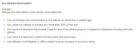 Fortunately, the CourseSmart Help page is infinitely more useful than that of CengageBrain, which at this point seemed more and more like a scam. CourseSmart offers instructions on where to go if you’d like to process a refund, so I dutifully followed its directions and wound up here: