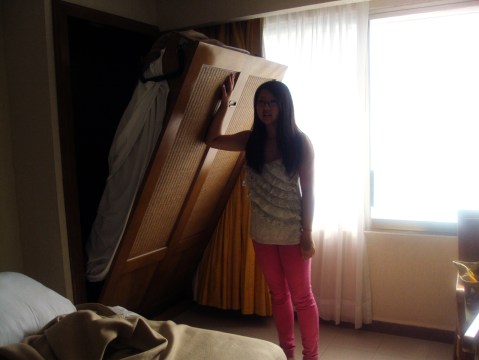 Our hotel room had two beds, and my father discovered a narrow fold-out bed from the wall. Amazing! My brother was originally supposed to sleep on it, but he complained that it was too hard. I tried it out and thought it was acceptable — honestly, after sleeping on the slab of concrete that passed for a mattress at Hong Kong University, any other mattress is comparatively comfortable.