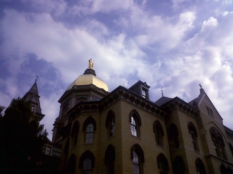 I was charged with the task of driving Jerry to Notre Dame on Wednesday morning. He had a scheduled tour at 10 a.m., and taking the time zone difference into consideration, that meant we had to leave the house at 6 a.m., and on the way back, I had to drop him off at O’Hare so he could catch his flight home. Awesome. I was pretty taken aback when my parents first sprung it on me, but I figured I would cherish the rare chance to spend a day with my cousin and visit Notre Dame for the first time myself.