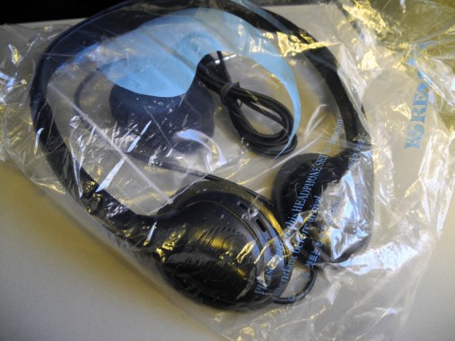 Having flown United for the great majority of my life, I was interested in spotting the differences between the two airlines. For one, Korean Air offers those over-the-ear headphones that people used to use with their Walkmans; I haven’t seen one in forever, and I wondered how many travelers these days would actually neglect to bring their own listening apparatuses. Seeing someone use that style of earphone with a touch-screen device would be so hipster. Each seat also contained a flat package that contained a pair of slippers, earplugs and a toothbrush — how homey!